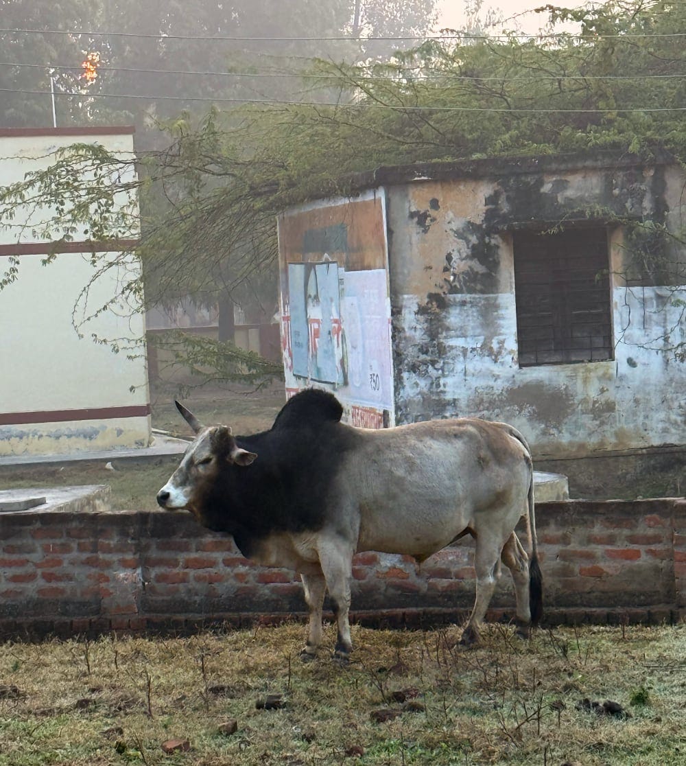 Bulls aren’t allowed to be slaughtered (nor are cows) in Uttar Pradesh, so they wander freely, somehow finding enough forage to be well muscled and slick. To a T, they aren’t aggressive in the least, unlike their American cousins.