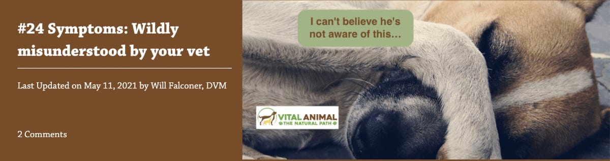 Symptoms show us that “how” and can be clarified and remedies arrived at as we wind our way to the goal of getting your animal to cure herself with tiny medicinal prompts.